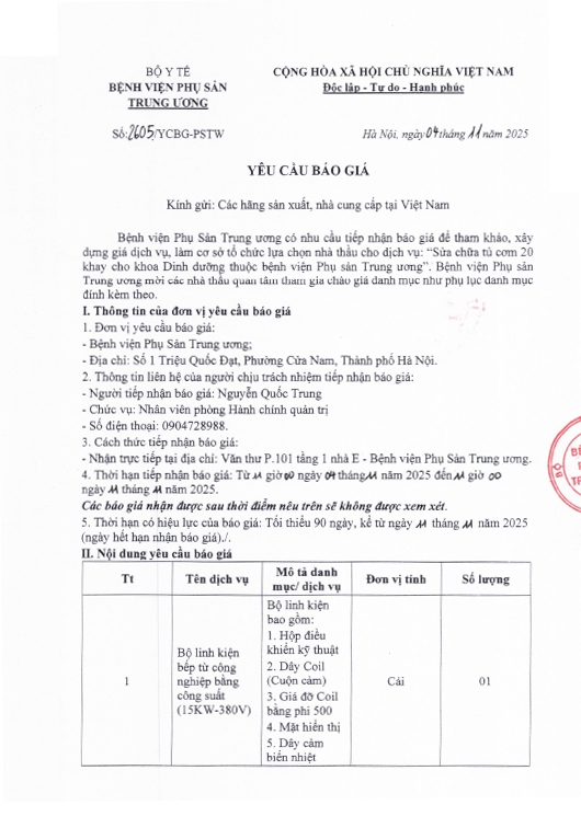 Yêu cầu báo giá số 2605/YCBG-PSTW ngày 04/11/2025