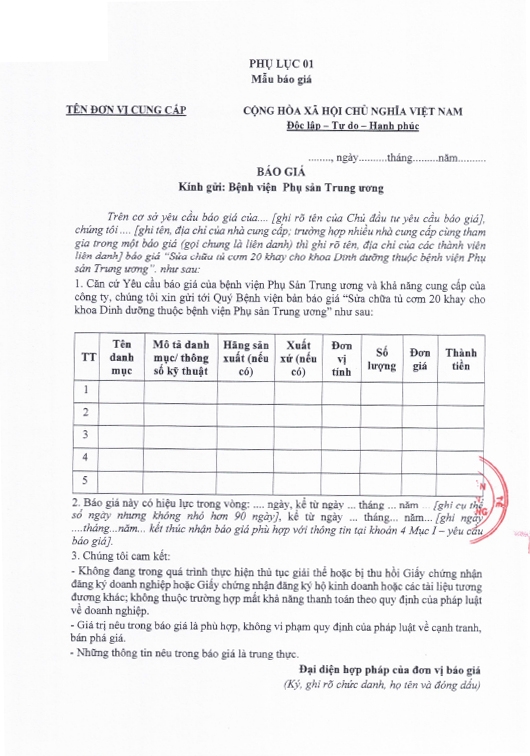 Kính gửi: Các hãng sản xuất, nhà cung cấp tại Việt Nam