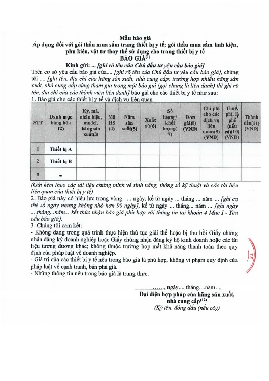 Kính gửi: Các hãng sản xuất, nhà cung cấp tại Việt Nam