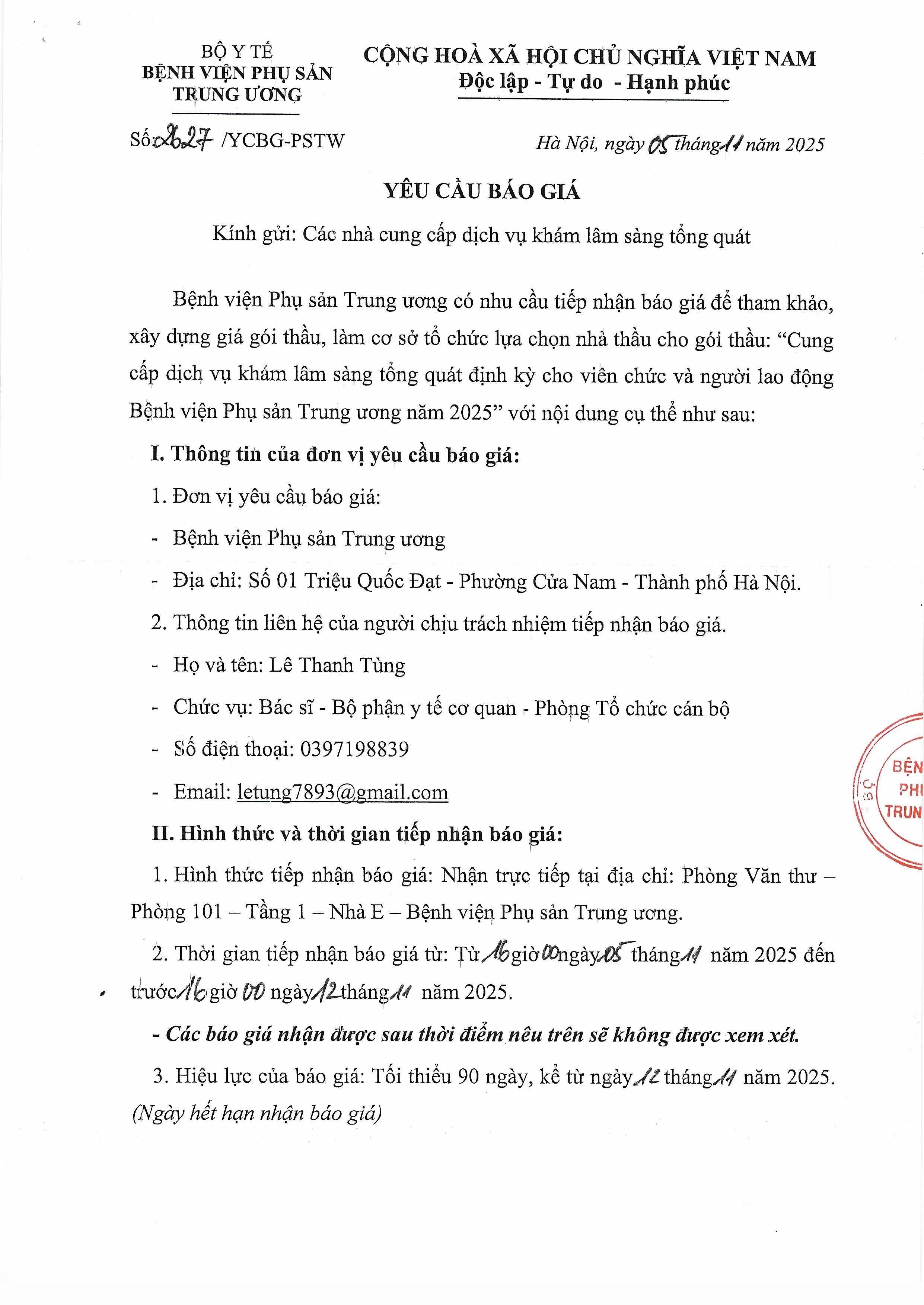 Yêu cầu báo giá số 2627/YCBG-PSTW ngày 05/11/2025