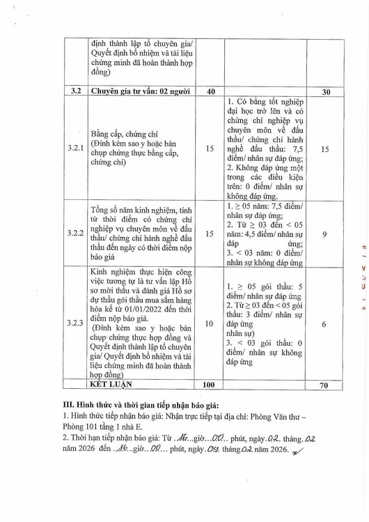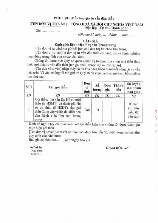 Kính gửi: Các đơn vị cung cấp dịch vụ tư vấn đấu thầu
