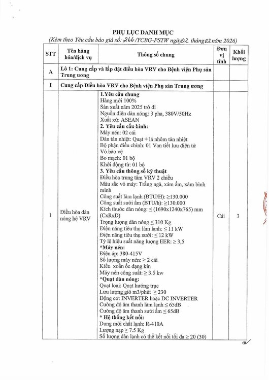 Kính gửi: Các hãng sản xuất, nhà cung cấp tại Việt Nam