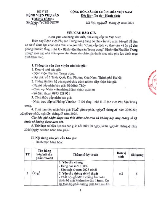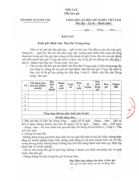 Kính gửi: Các hãng sản xuất, nhà cung cấp tại Việt Nam