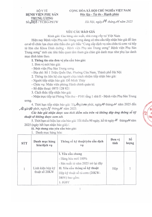 Yêu cầu báo giá số 2703/YCBG-PSTW ngày 17/11/2025