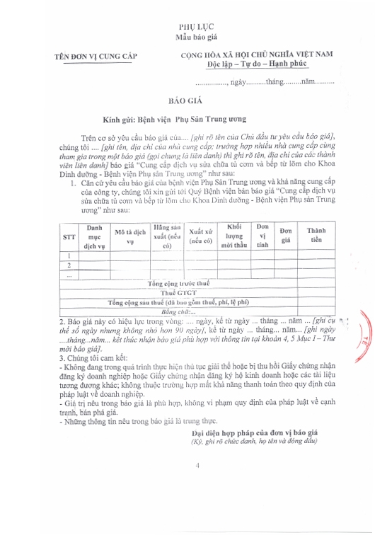 Kính gửi: Các hãng sản xuất, nhà cung cấp tại Việt Nam