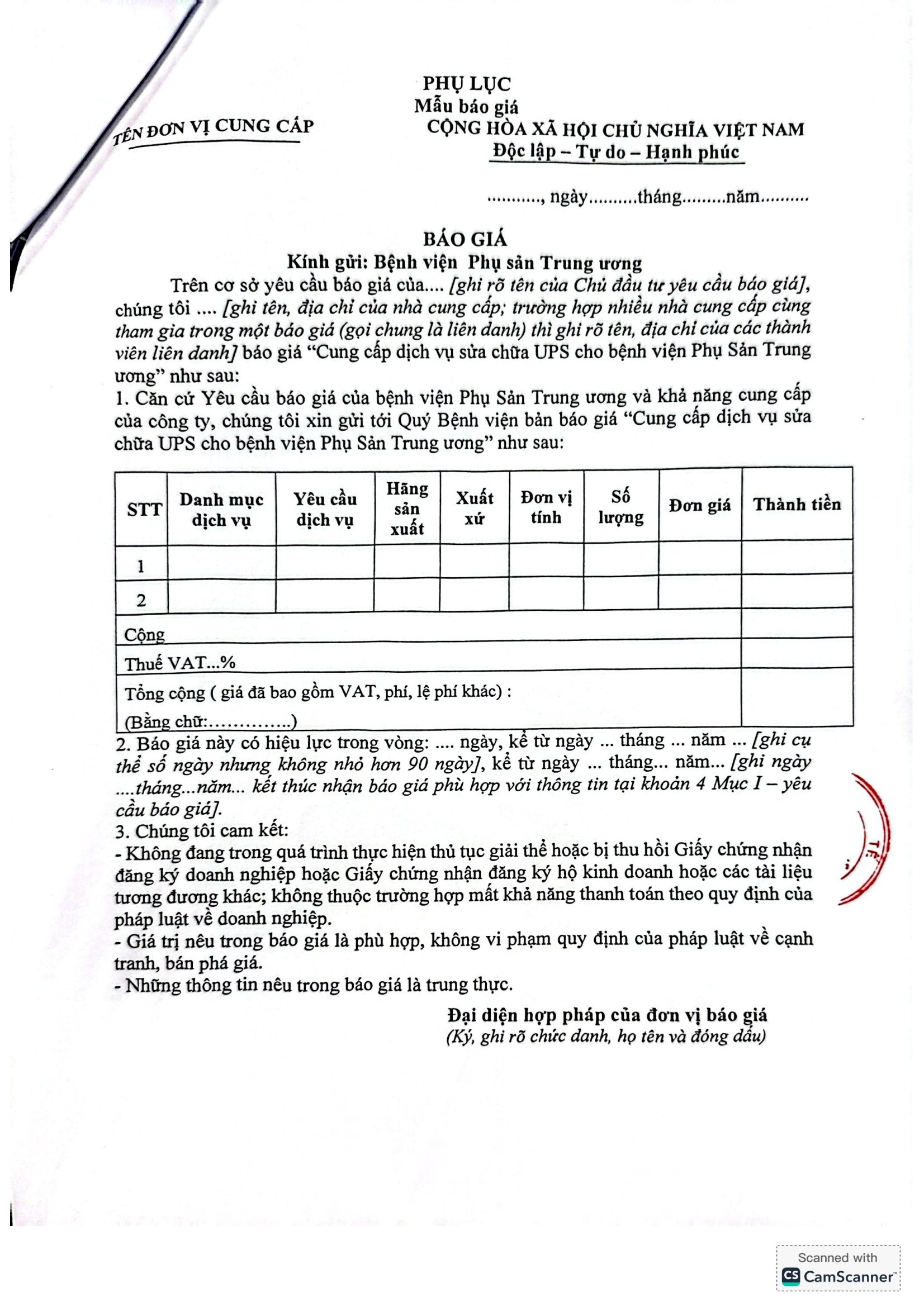 Kính gửi: Các hãng sản xuất, nhà cung cấp tại Việt Nam