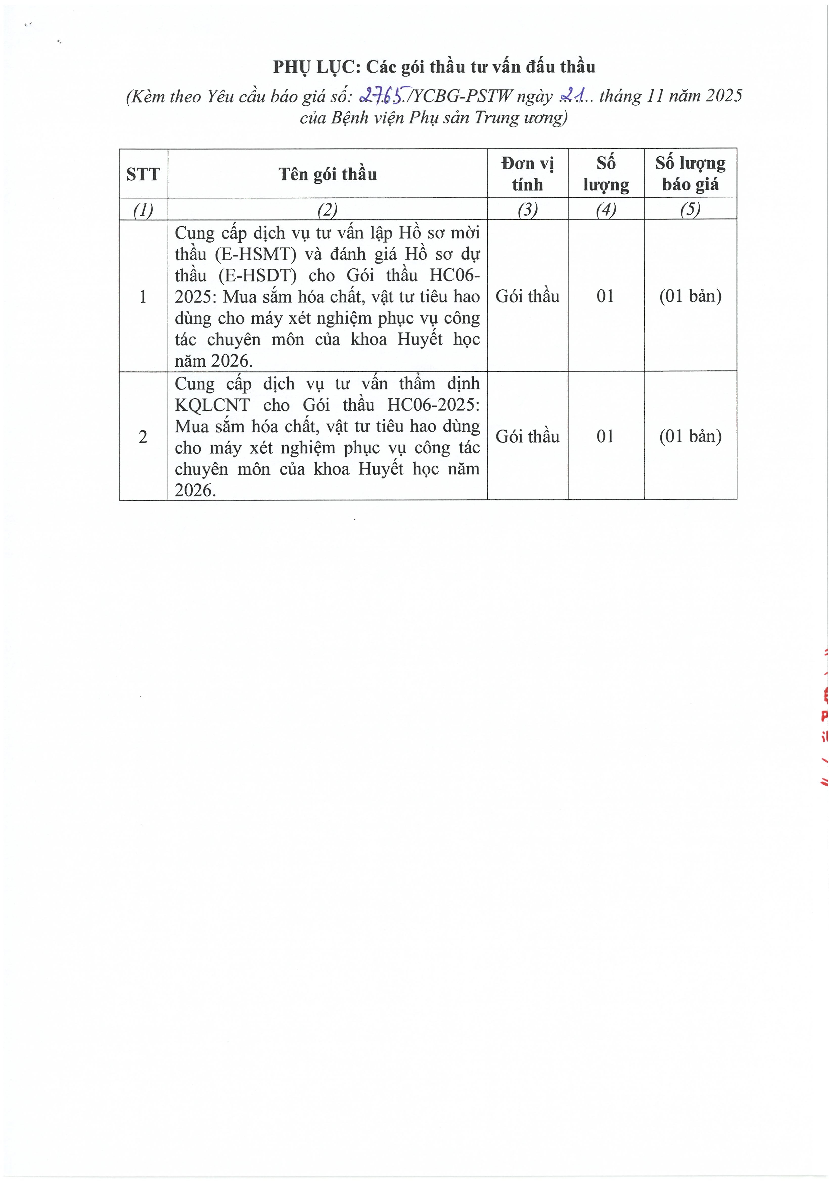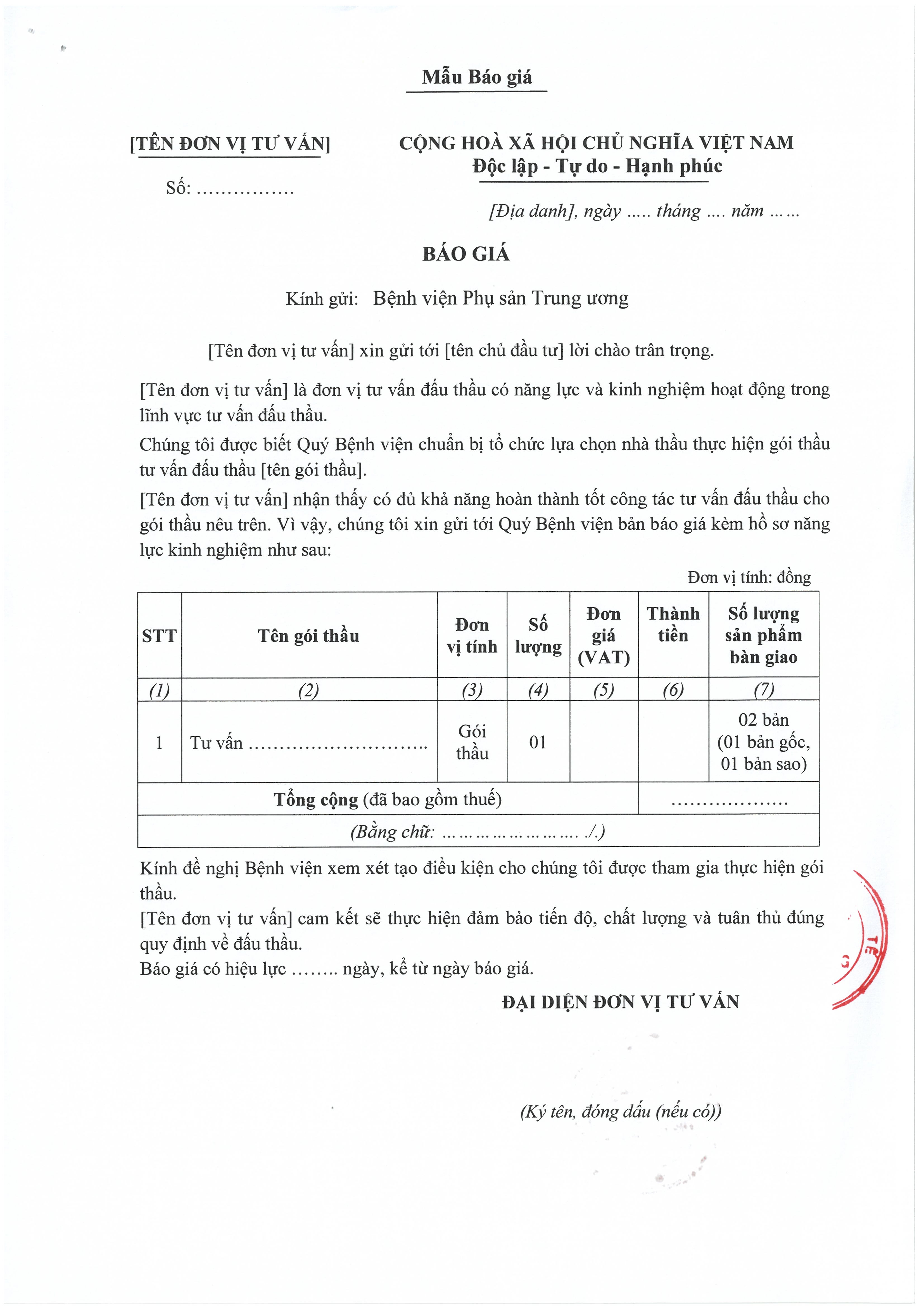 Kính gửi: Các đơn vị cung cấp dịch vụ tư vấn đấu thầu