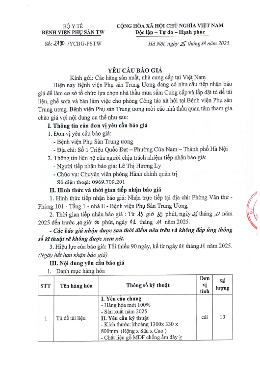 Yêu cầu báo giá số 2790/YCBG-PSTW ngày 25/11/2025