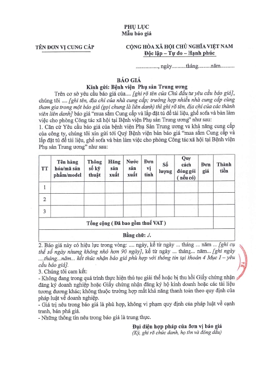 Kính gửi: Các hãng sản xuất, nhà cung cấp tại Việt Nam