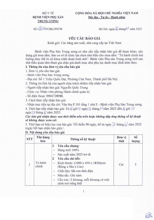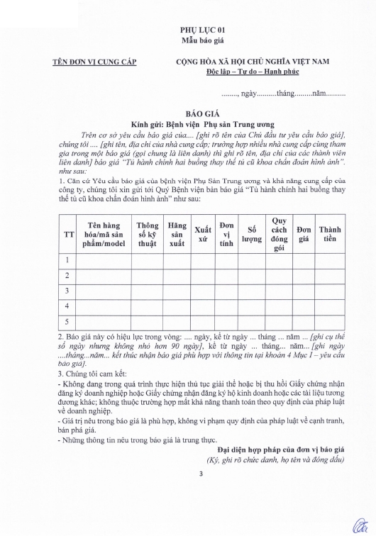 Kính gửi: Các hãng sản xuất, nhà cung cấp tại Việt Nam