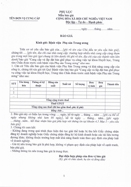 Kính gửi: Các hãng sản xuất, nhà cung cấp tại Việt Nam