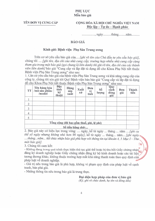 Kính gửi: Các hãng sản xuất, nhà cung cấp tại Việt Nam
