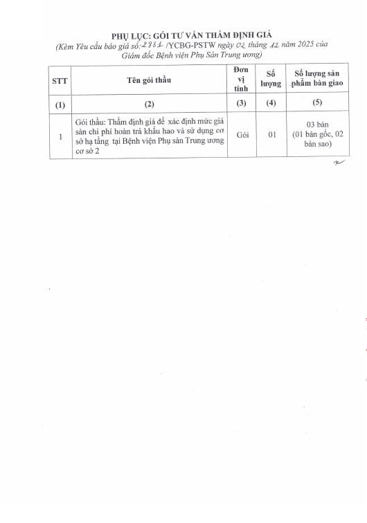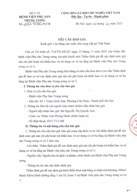 Yêu cầu báo giá số 2881/YCBG-PSTW ngày 02/12/2025