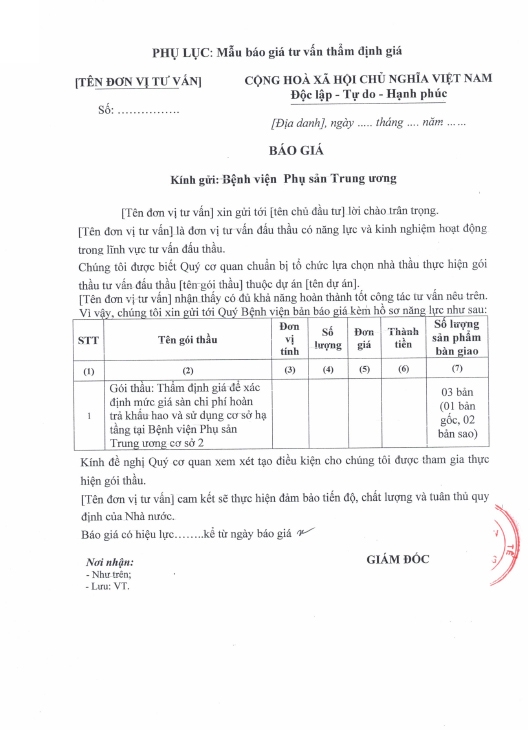 Kính gửi: Các hãng sản xuất, nhà cung cấp tại Việt Nam