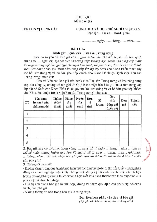Kính gửi: Các hãng sản xuất, nhà cung cấp tại Việt Nam