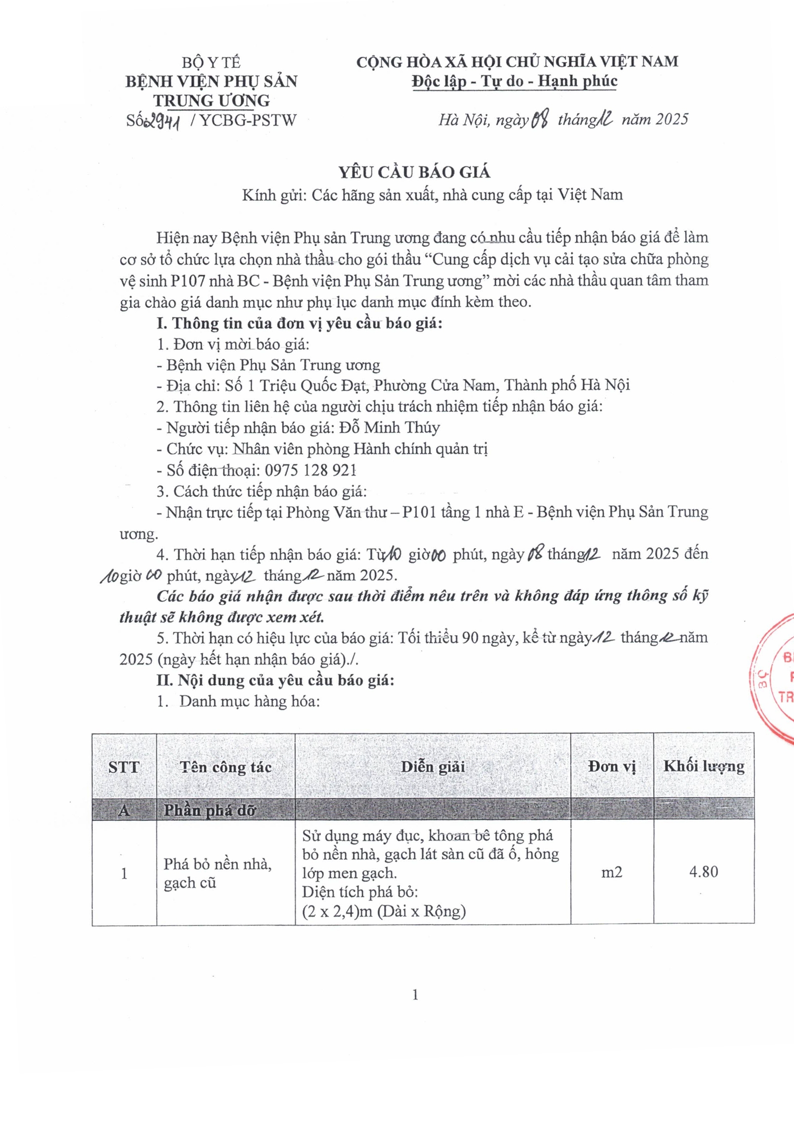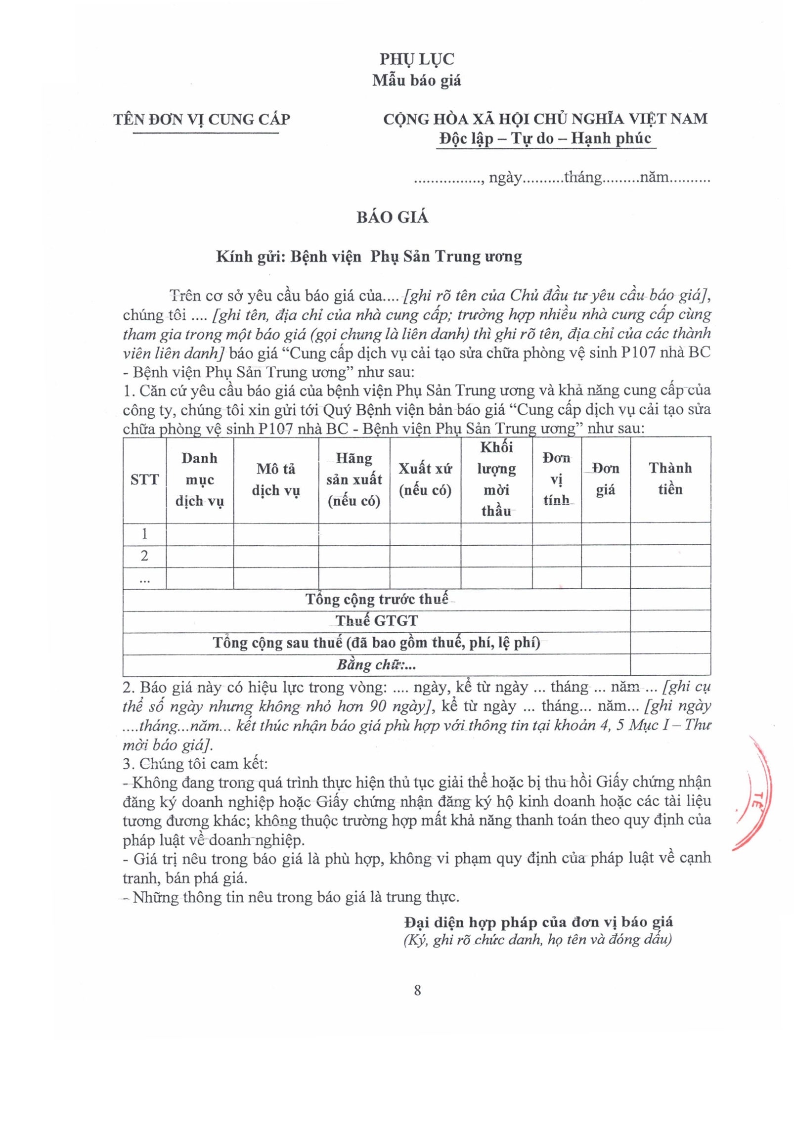 Kính gửi: Các hãng sản xuất, nhà cung cấp tại Việt Nam