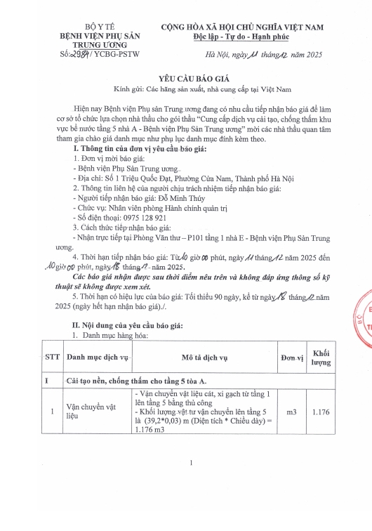 Yêu cầu báo giá số 2984/YCBG-PSTW ngày 11/12/2025