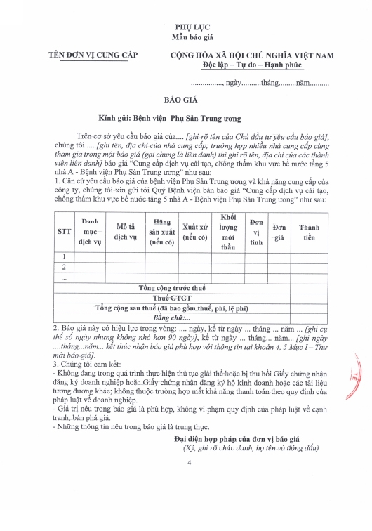 Kính gửi: Các hãng sản xuất, nhà cung cấp tại Việt Nam