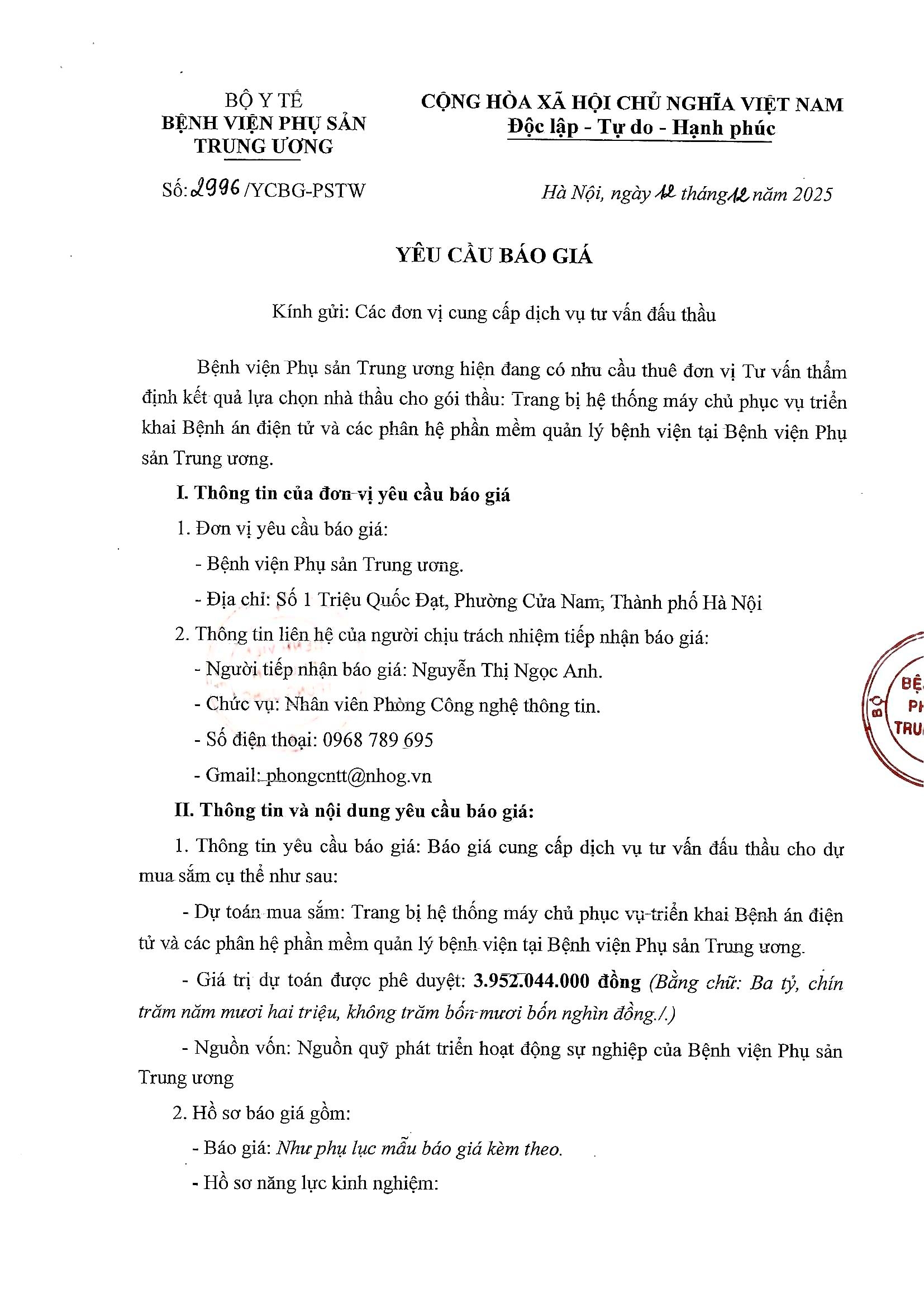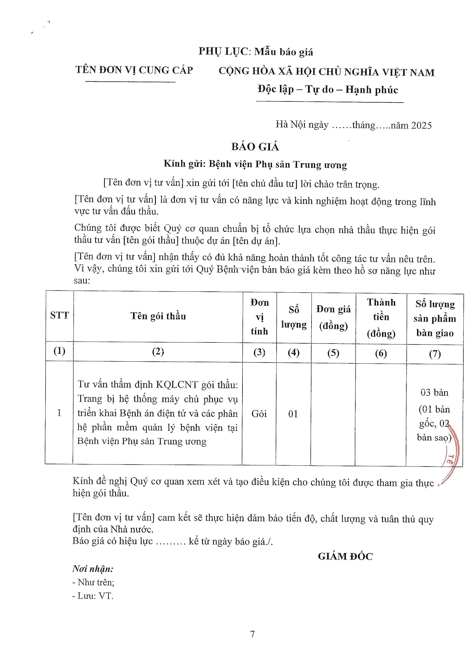 Kính gửi: Các đơn vị cung cấp dịch vụ tư vấn đấu thầu
