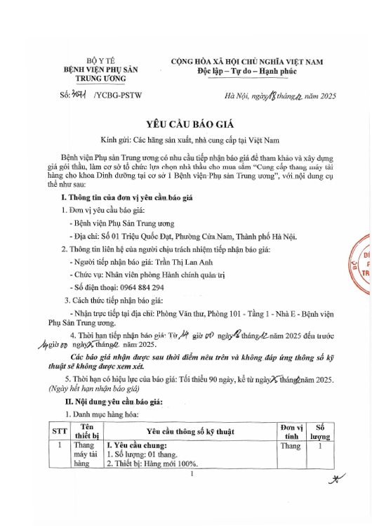 Kính gửi: Các hãng sản xuất, nhà cung cấp tại Việt Nam