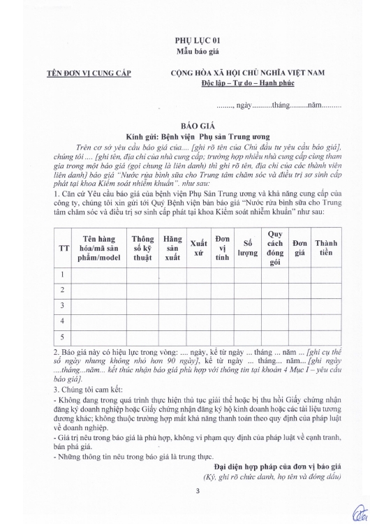 Kính gửi: Các hãng sản xuất, nhà cung cấp tại Việt Nam