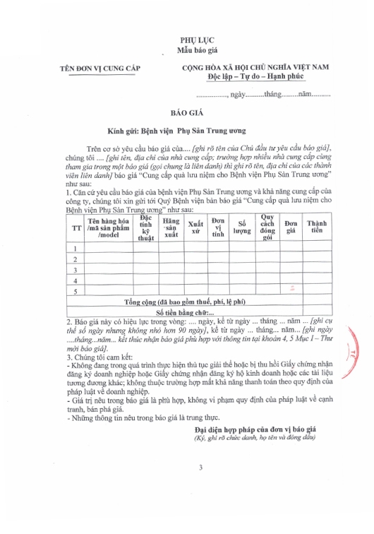 Kính gửi: Các hãng sản xuất, nhà cung cấp tại Việt Nam