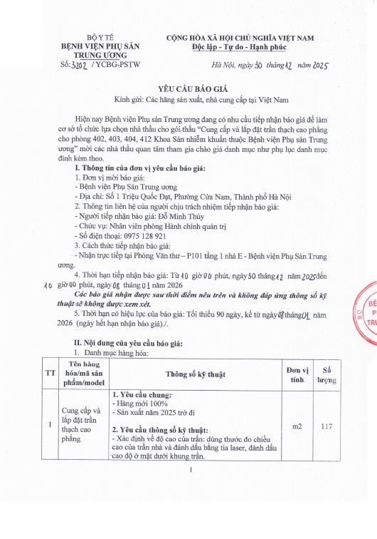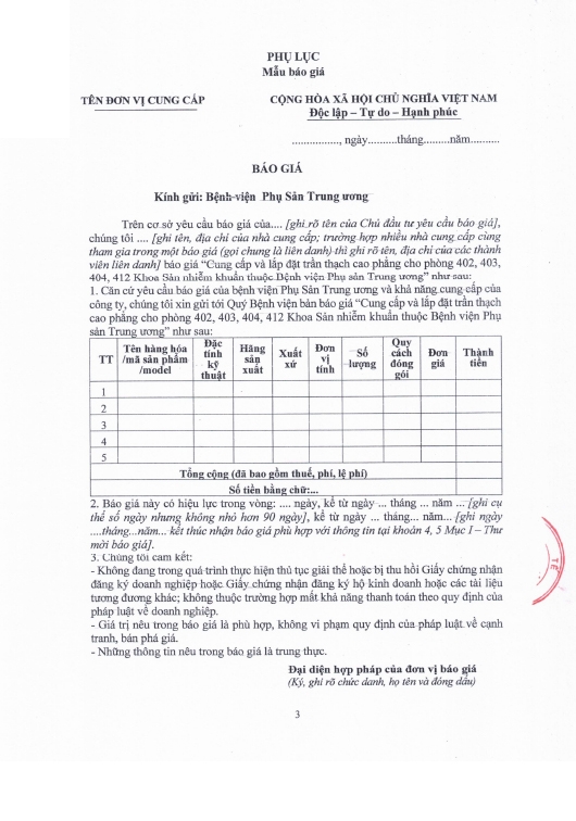 Kính gửi: Các hãng sản xuất, nhà cung cấp tại Việt Nam