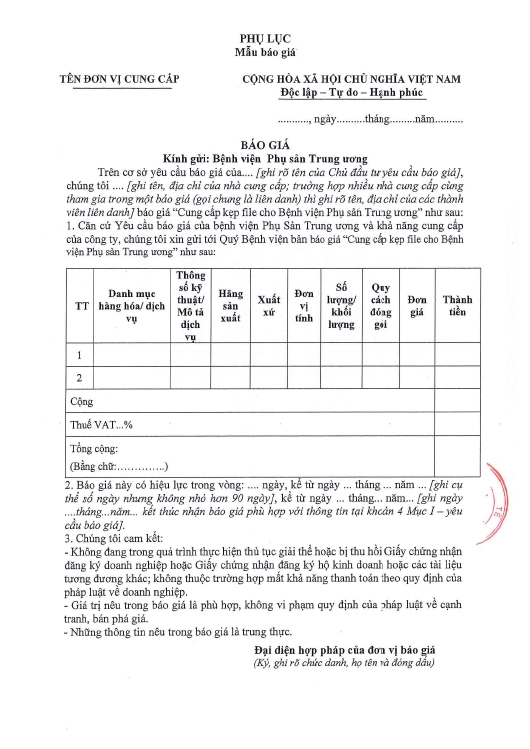 Kính gửi: Các hãng sản xuất, nhà cung cấp tại Việt Nam
