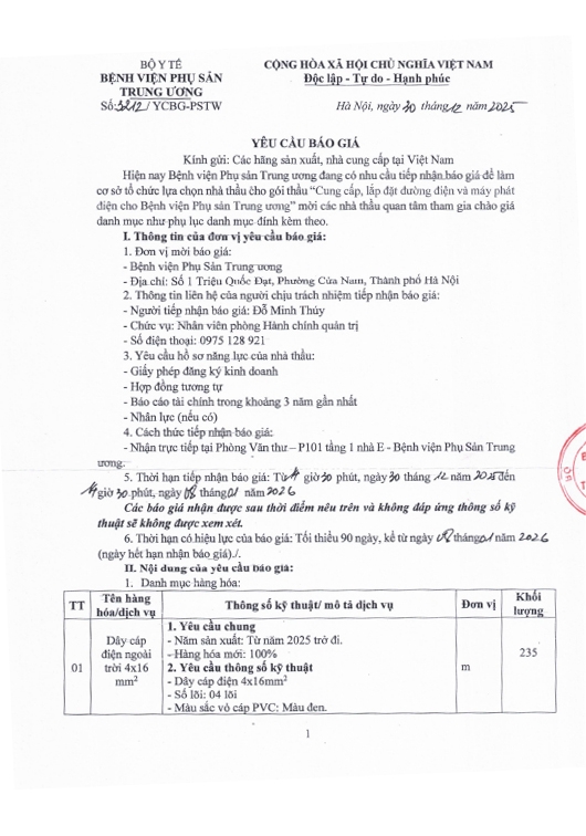 Kính gửi: Các hãng sản xuất, nhà cung cấp tại Việt Nam