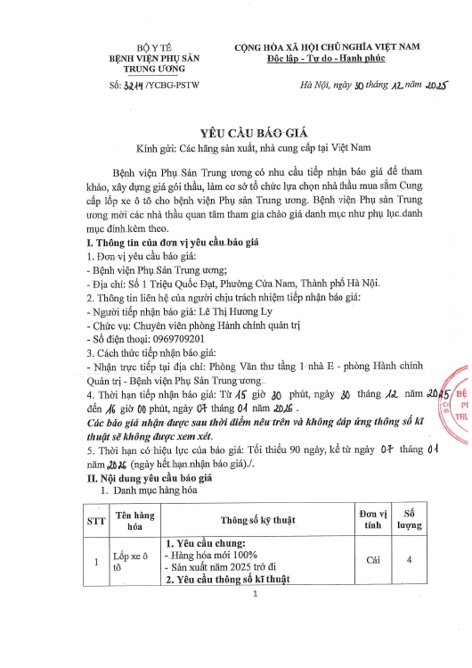 Yêu cầu báo giá số 3214/YCBG-PSTW ngày 30/12/2025