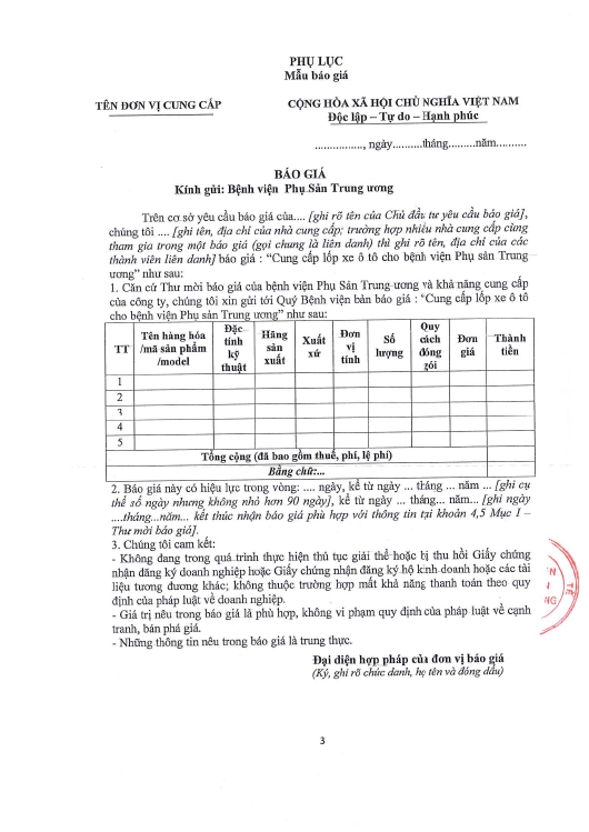 Kính gửi: Các hãng sản xuất, nhà cung cấp tại Việt Nam