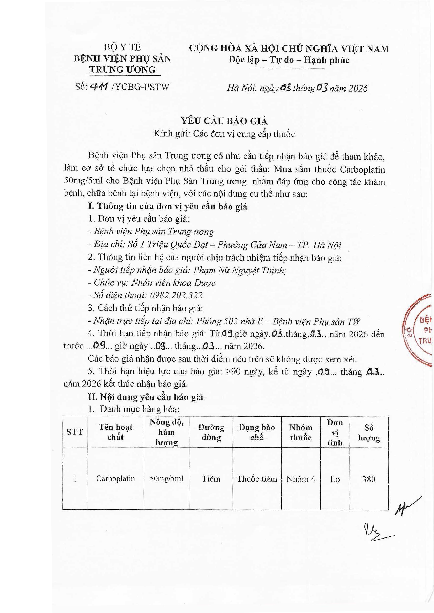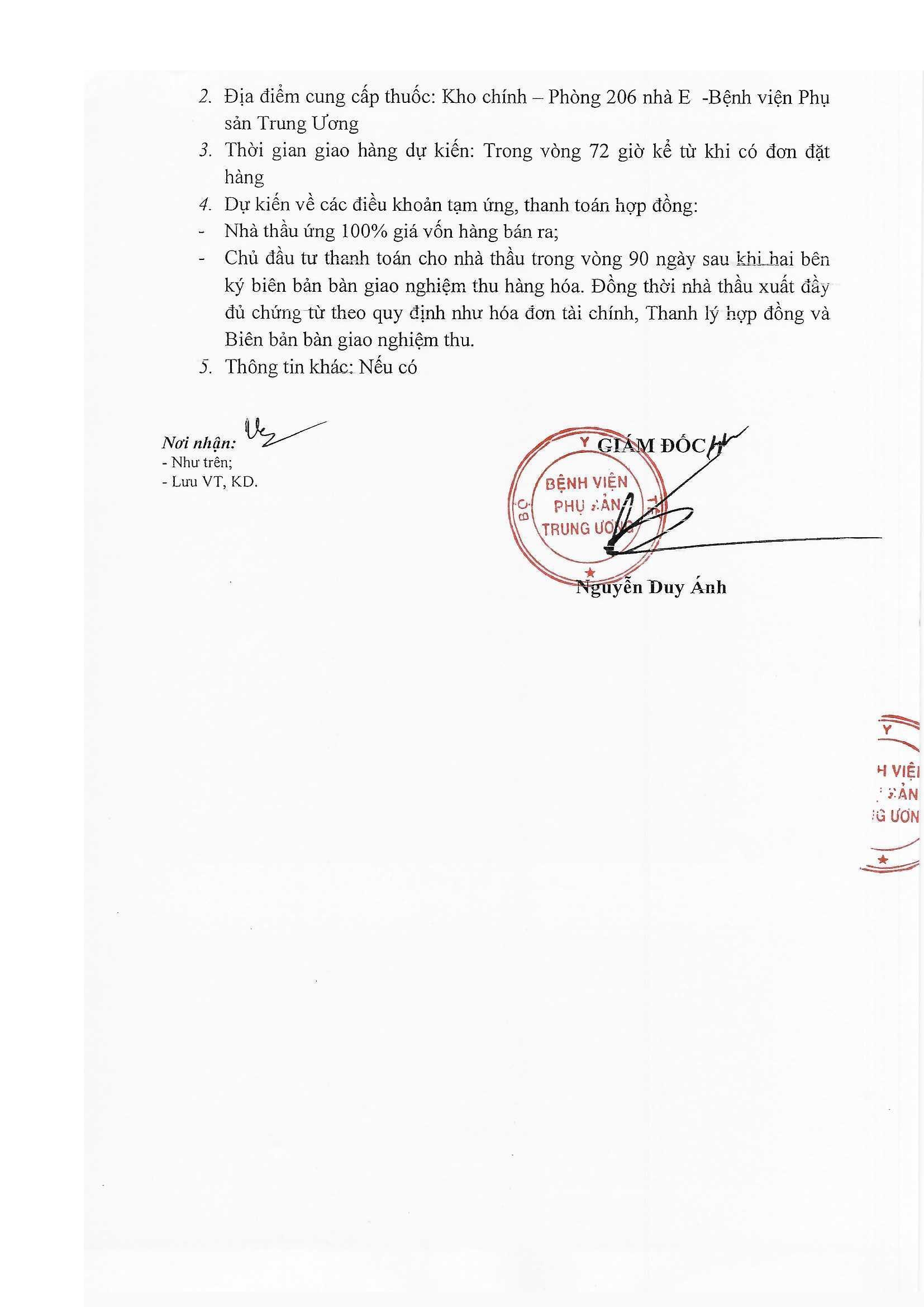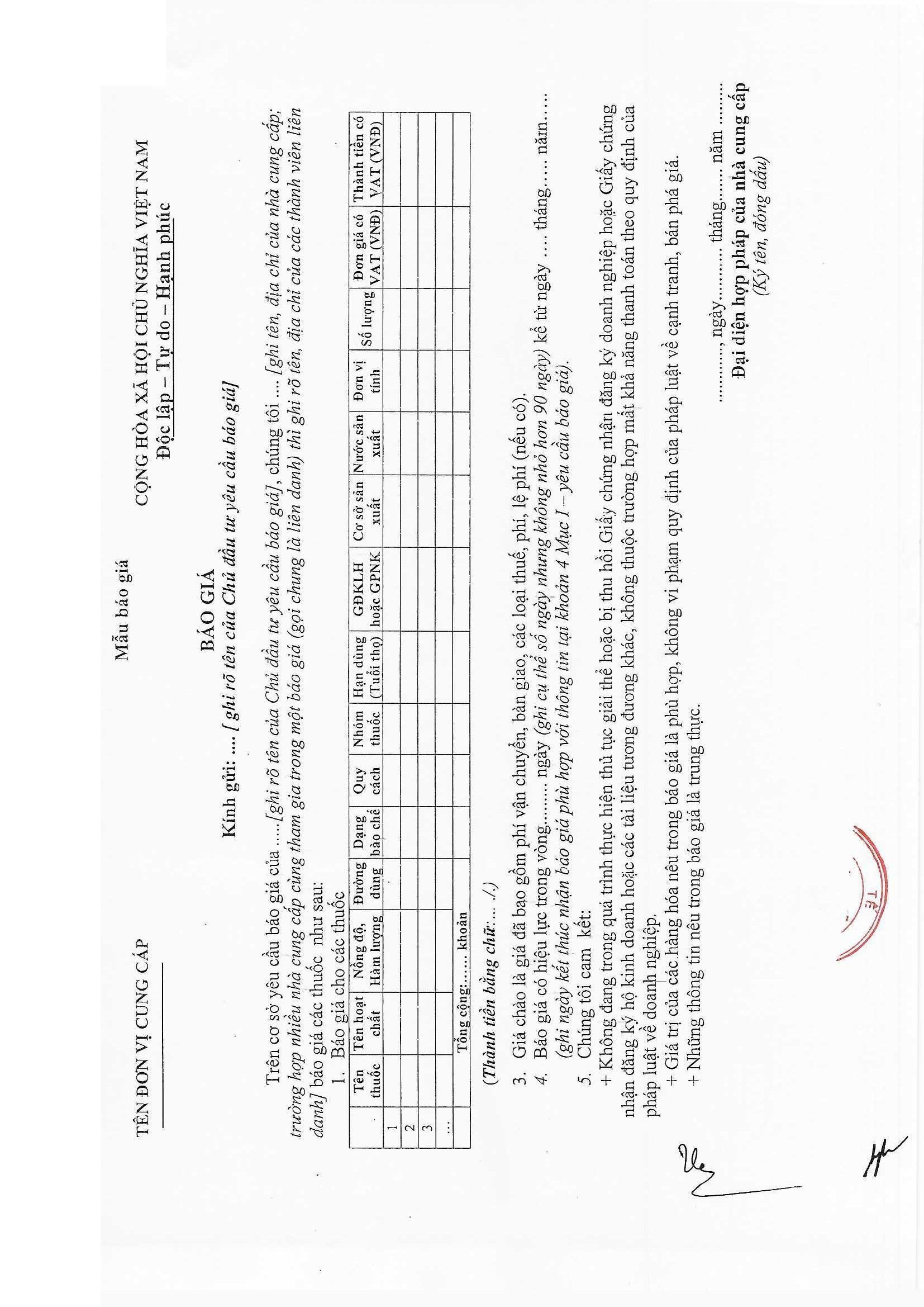 Kính gửi: Các đơn vị cung cấp thuốc