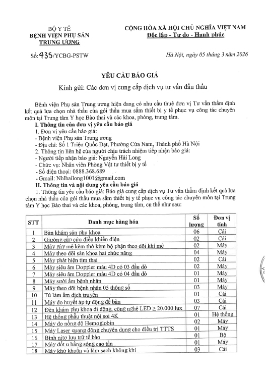 Yêu cầu báo giá số 435/YCBG-PSTW ngày 05/03/2026