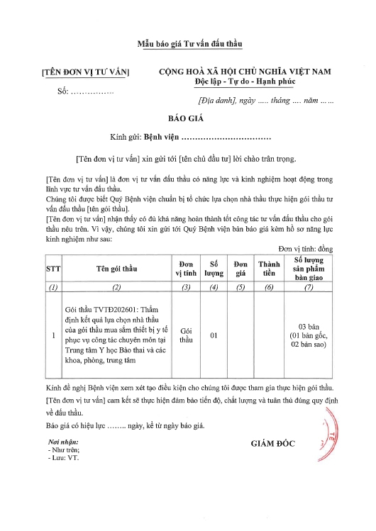 Kính gửi: Các hãng sản xuất, nhà cung cấp tại Việt Nam