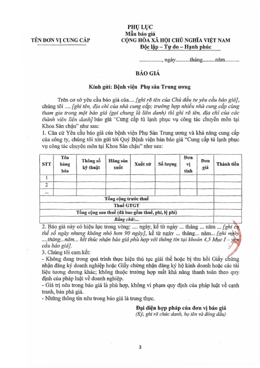 Kính gửi: Các hãng sản xuất, nhà cung cấp tại Việt Nam
