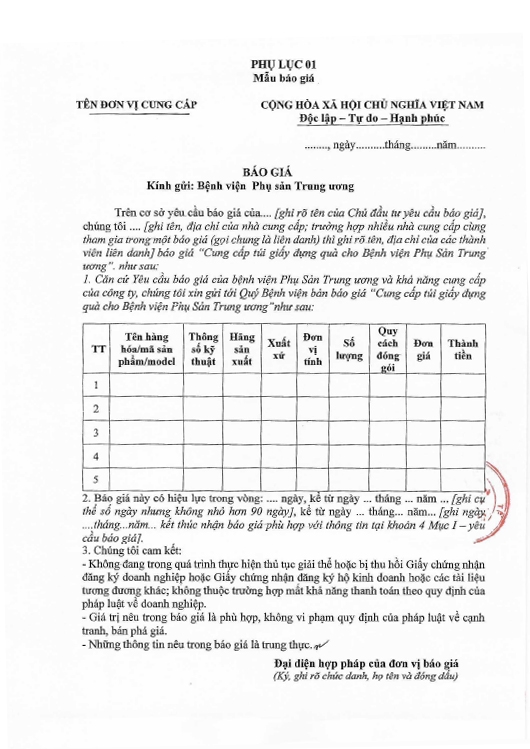 Kính gửi: Các hãng sản xuất, nhà cung cấp tại Việt Nam