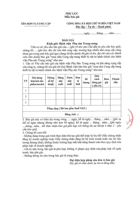 Kính gửi: Các hãng sản xuất, nhà cung cấp tại Việt Nam
