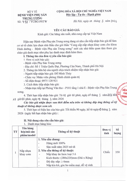 Kính gửi: Các hãng sản xuất, nhà cung cấp tại Việt Nam