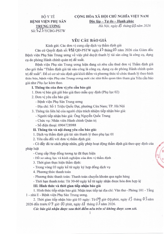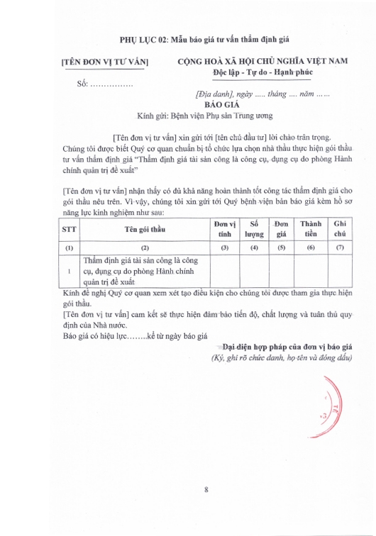Kính gửi: Các đơn vị cung cấp dịch vụ thẩm định giá