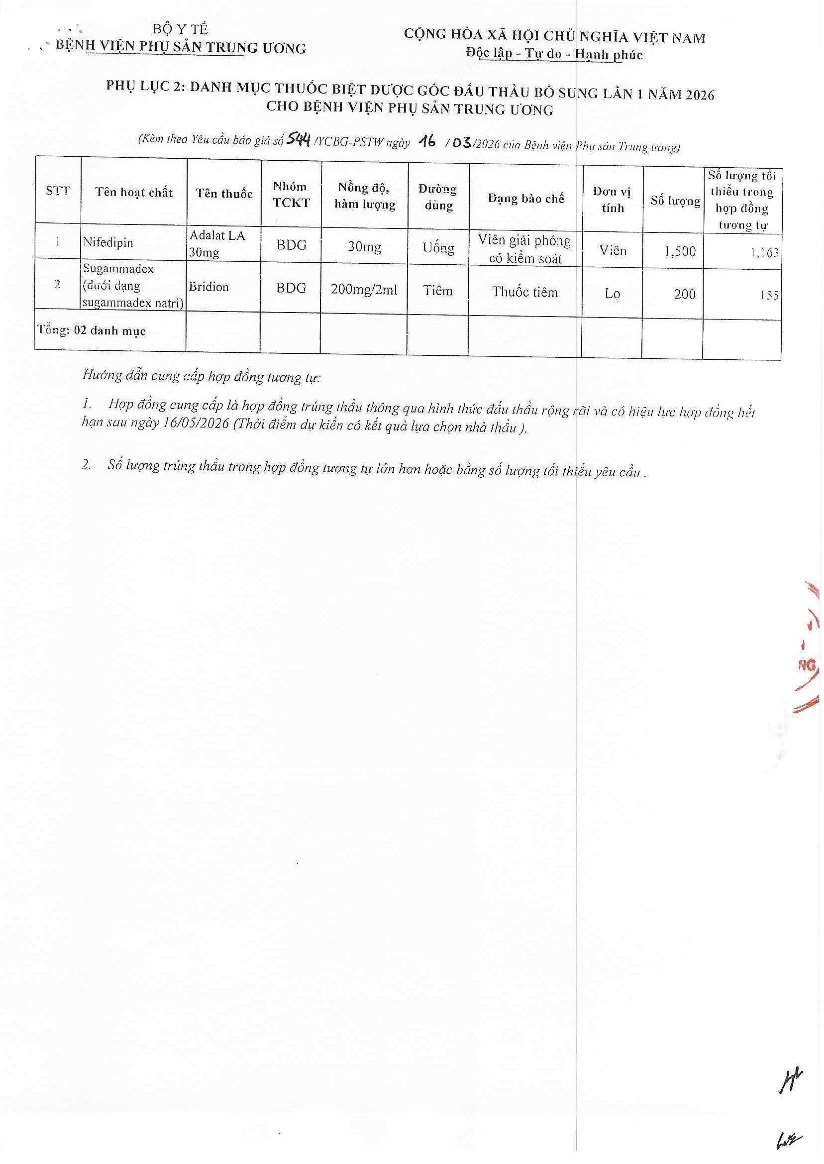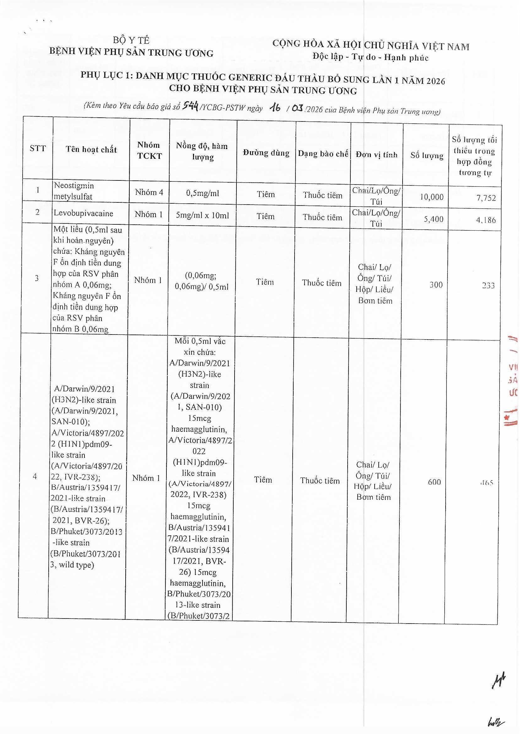 Kính gửi: Các đơn vị cung cấp thuốc