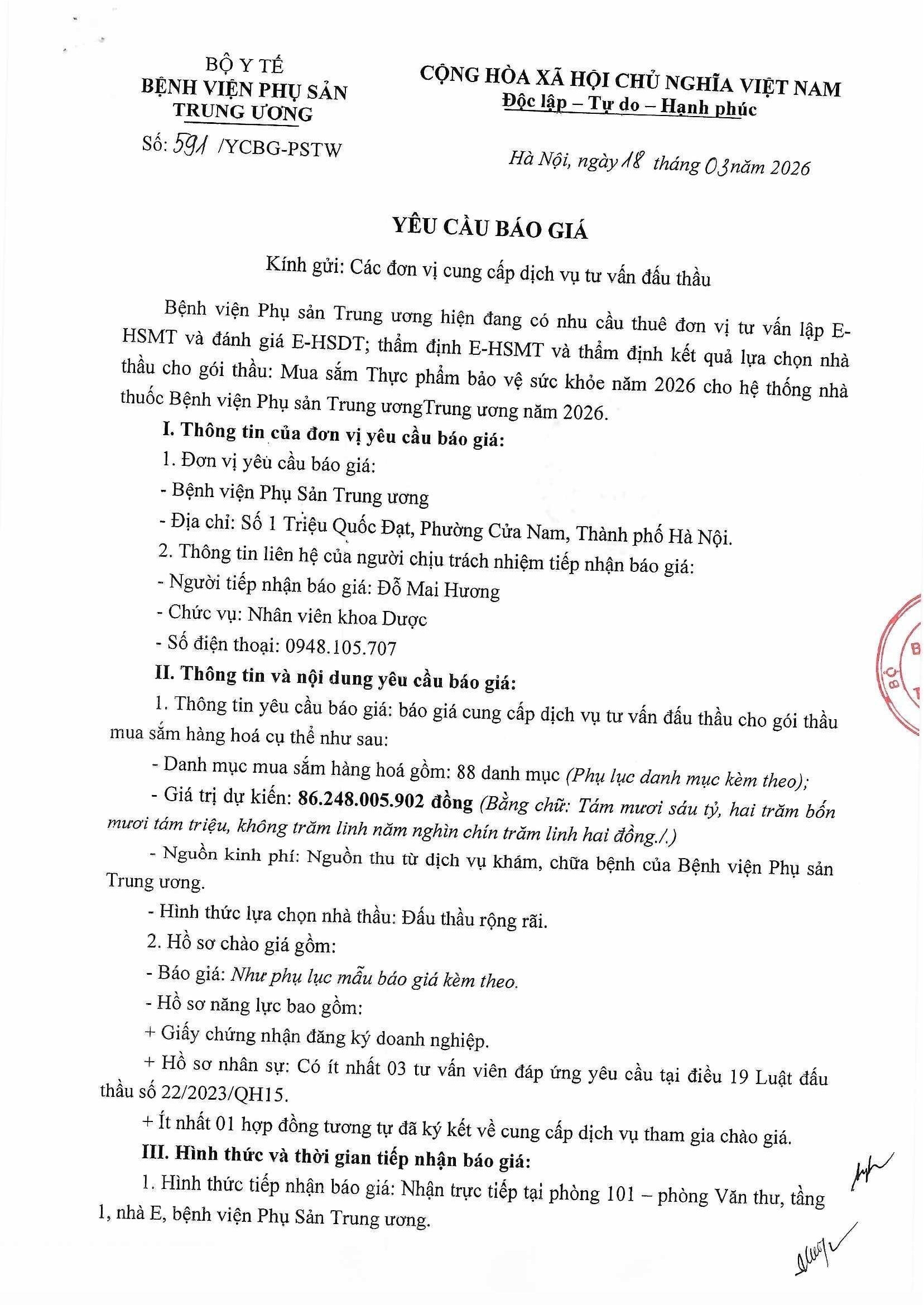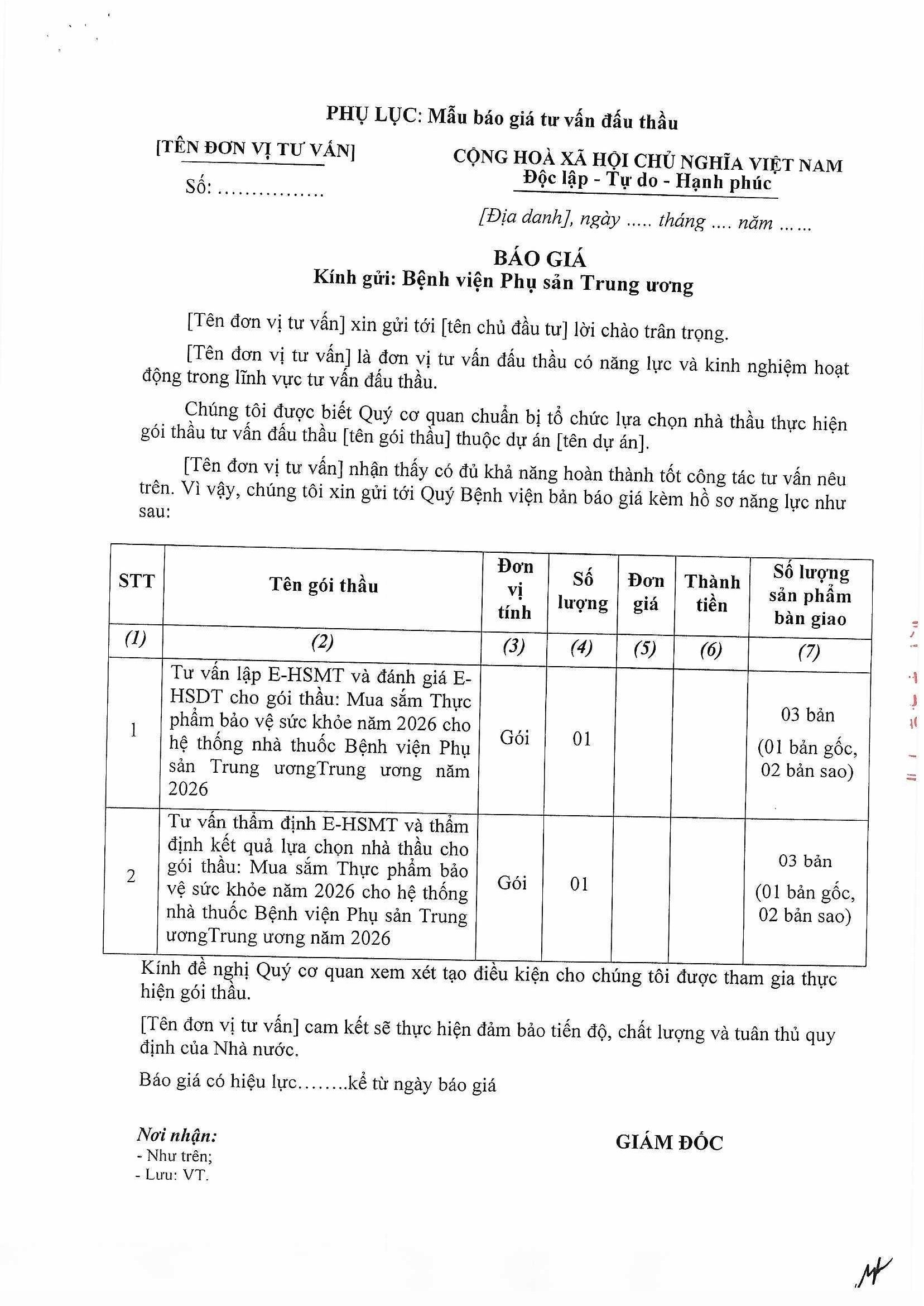Kính gửi: Các đơn vị cung cấp dịch vụ tư vấn đấu thầu