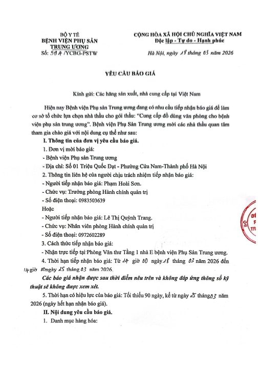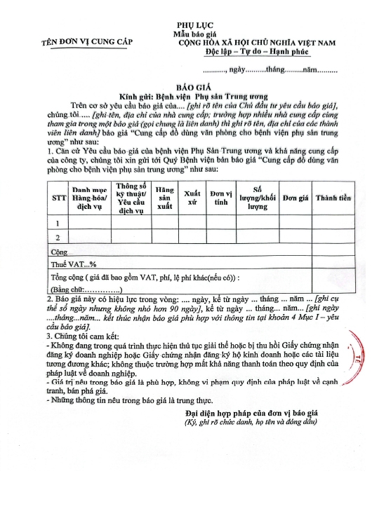 Kính gửi: Các hãng sản xuất, nhà cung cấp tại Việt Nam