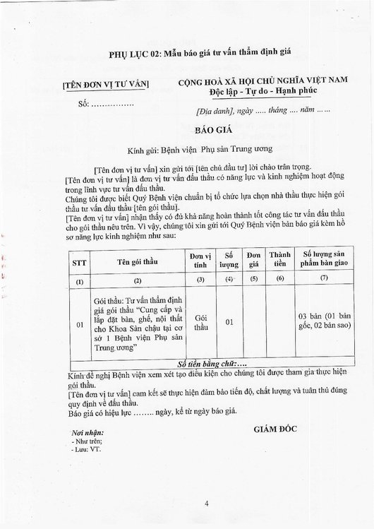 Kính gửi: Các đơn vị cung cấp dịch vụ tư vấn thẩm định giá