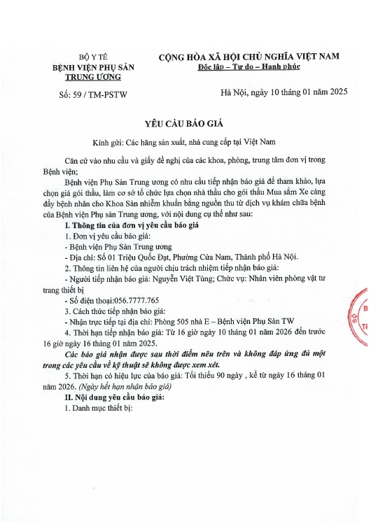 Kính gửi: Các hãng sản xuất, nhà cung cấp tại Việt Nam