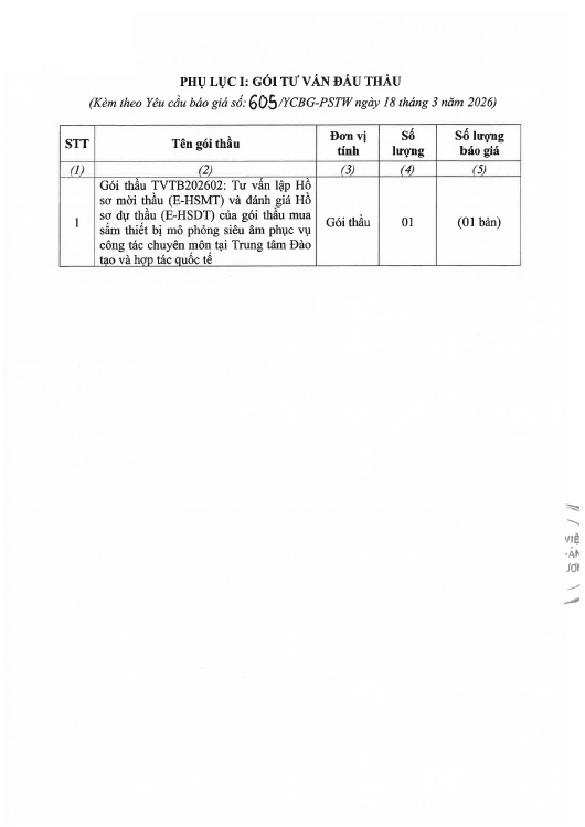 Kính gửi: Các đơn vị cung cấp dịch vụ tư vấn đấu thầu