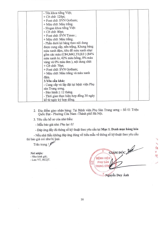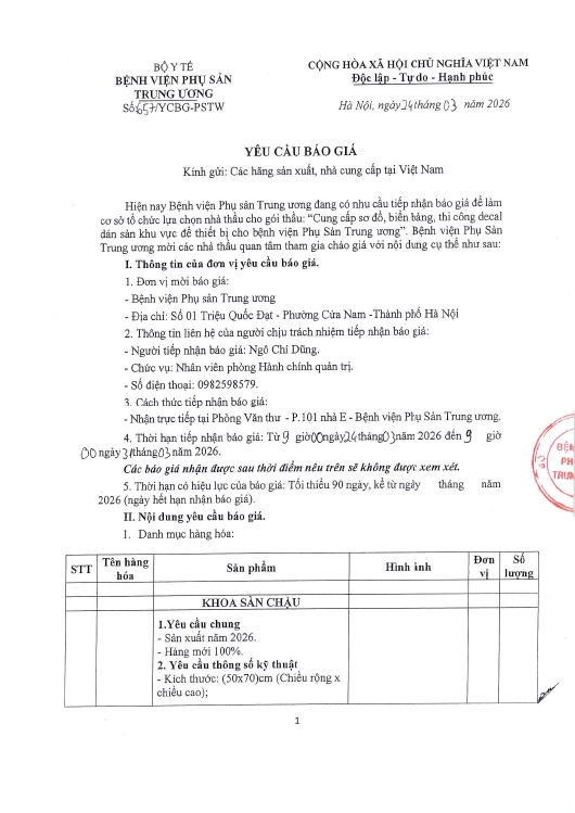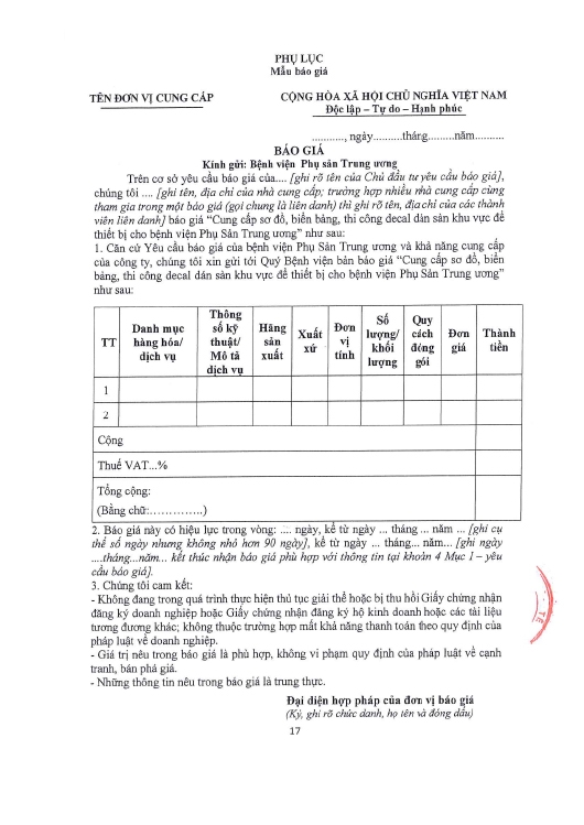 Kính gửi: Các hãng sản xuất, nhà cung cấp tại Việt Nam