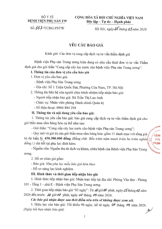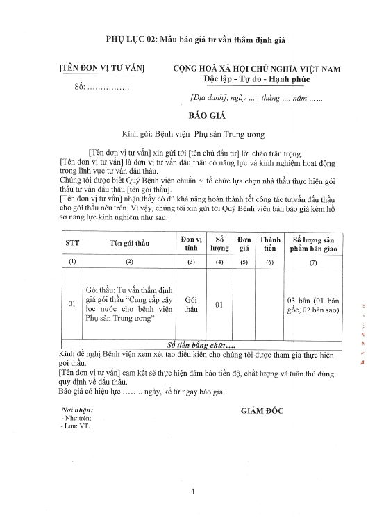 Kính gửi: Các đơn vị cung cấp dịch vụ tư vấn thẩm định giá
