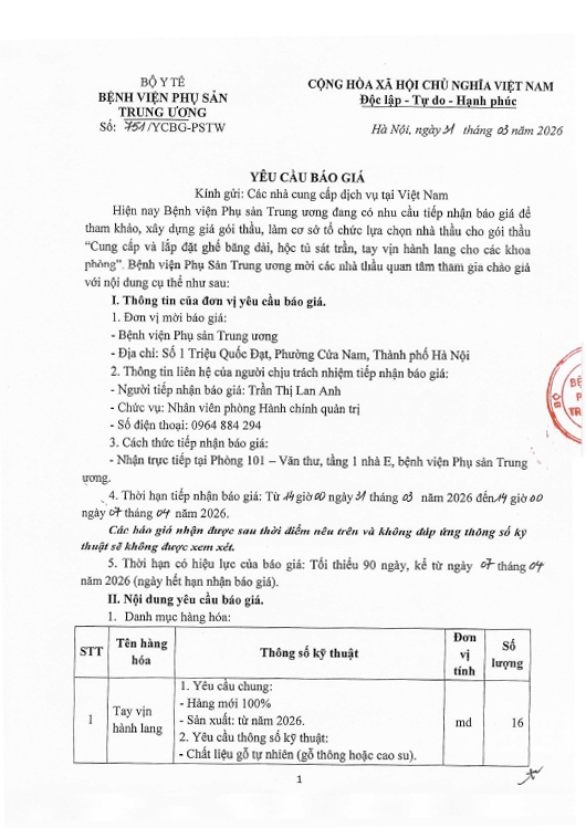 Yêu cầu báo giá số 751/YCBG-PSTW ngày 31/03/2026