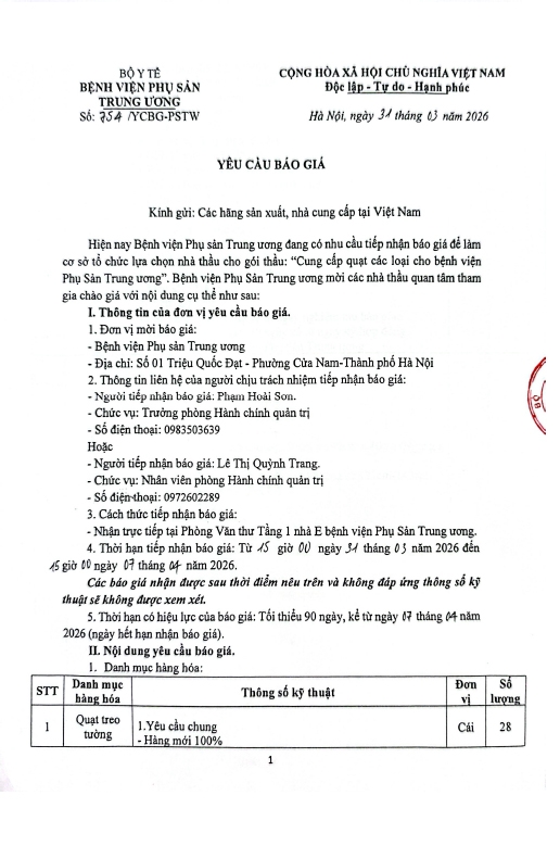 Yêu cầu báo giá số 754/YCBG-PSTW ngày 31/03/2026