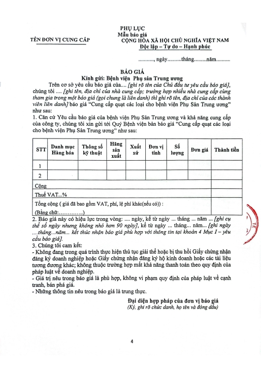Kính gửi: Các hãng sản xuất, nhà cung cấp tại Việt Nam
